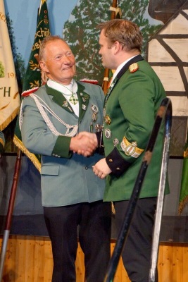 Nach den Halbjahresberichten des Vorstandes wurde Bezirkskommandant Wilfried Stoffels, der auf seinen Wunsch hin nach 25 Jahren aus dem Bezirksvorstand ausschied, für sein jahrelanges Engagement im Bezirksvorstand durch Bezirksbundesmeister Mathias Tennior mit der Ehrennadel des Bezirksverbandes ausgezeichnet und zum Ehrenbezirkskommandanten ernannt.